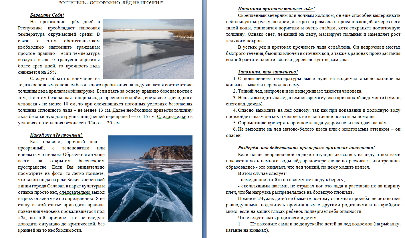 "ОТТЕПЕЛЬ - ОСТОРОЖНО, ЛЁД НЕ ПРОЧЕН!"