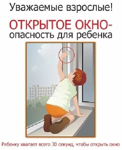 - объясняйте ребенку опасность открытого окна из-за возможного падения.