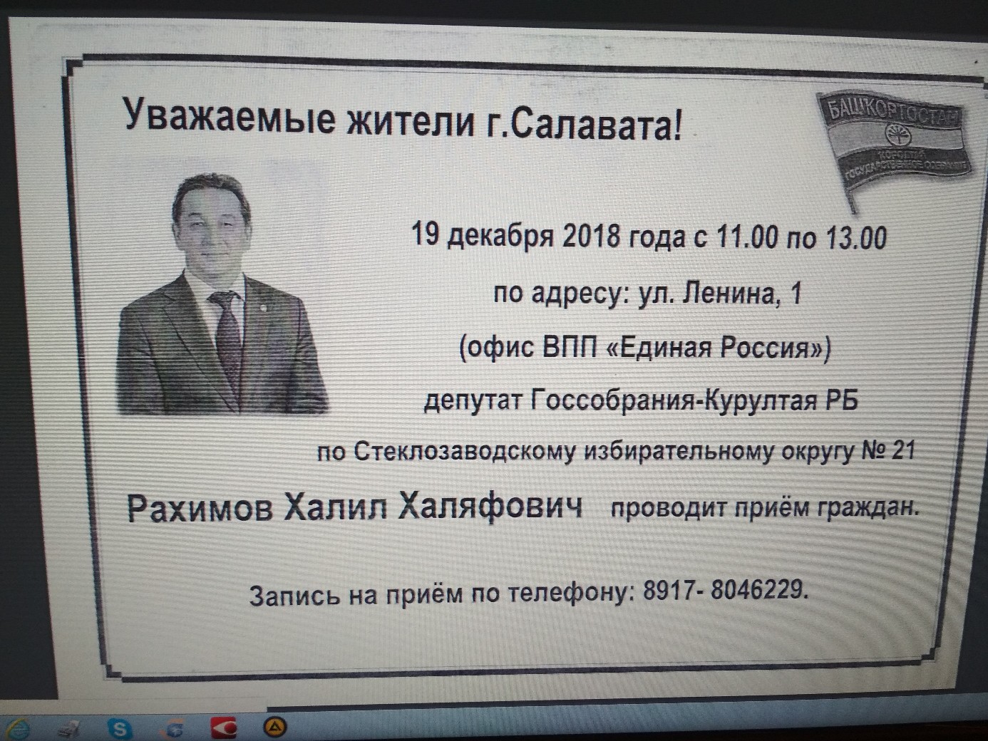 Информация о приеме граждан депутатом Рахимовым