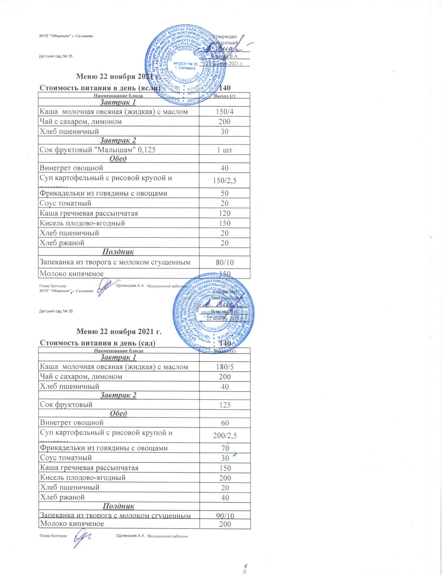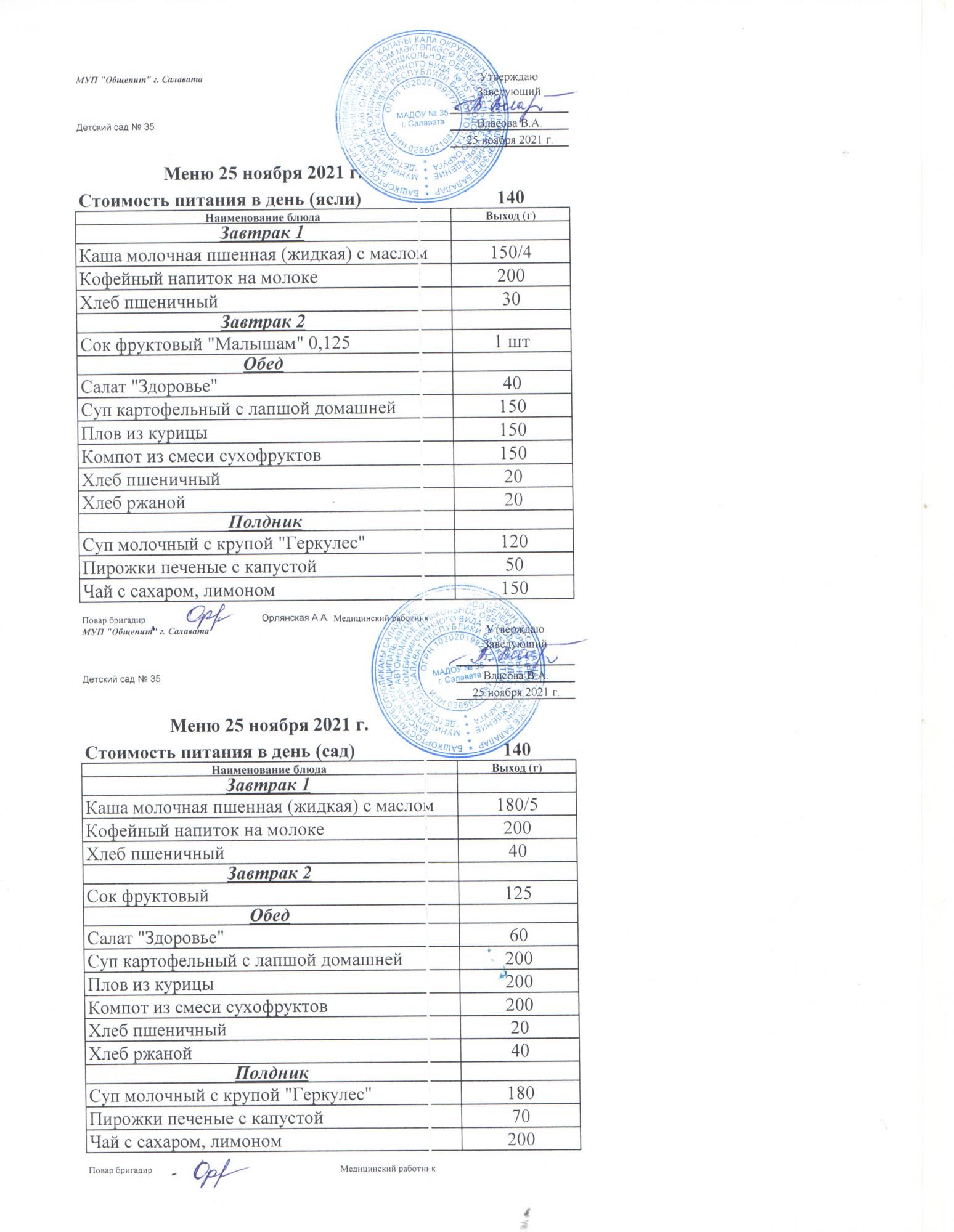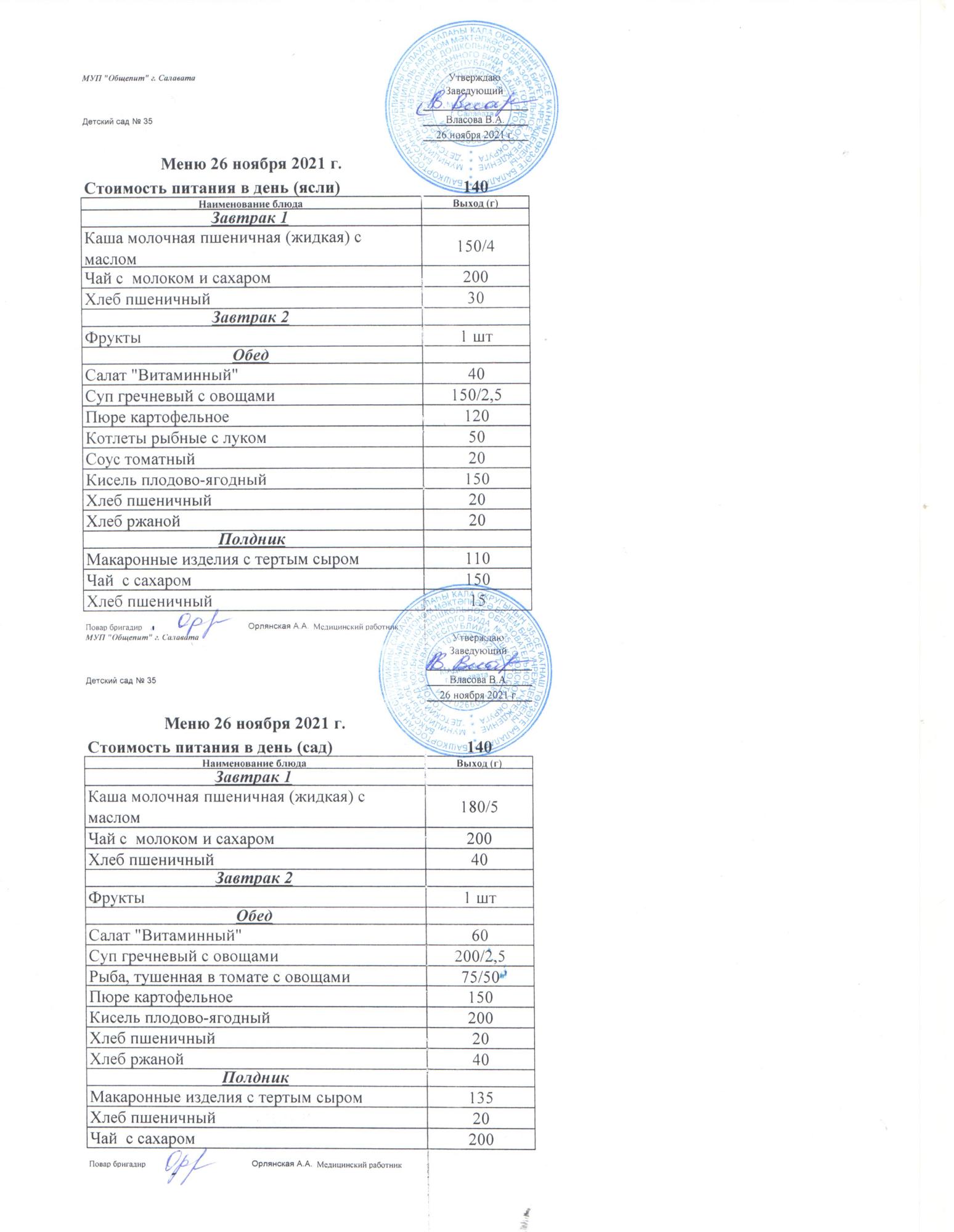 индивидуальное меню для Н.М.Д.