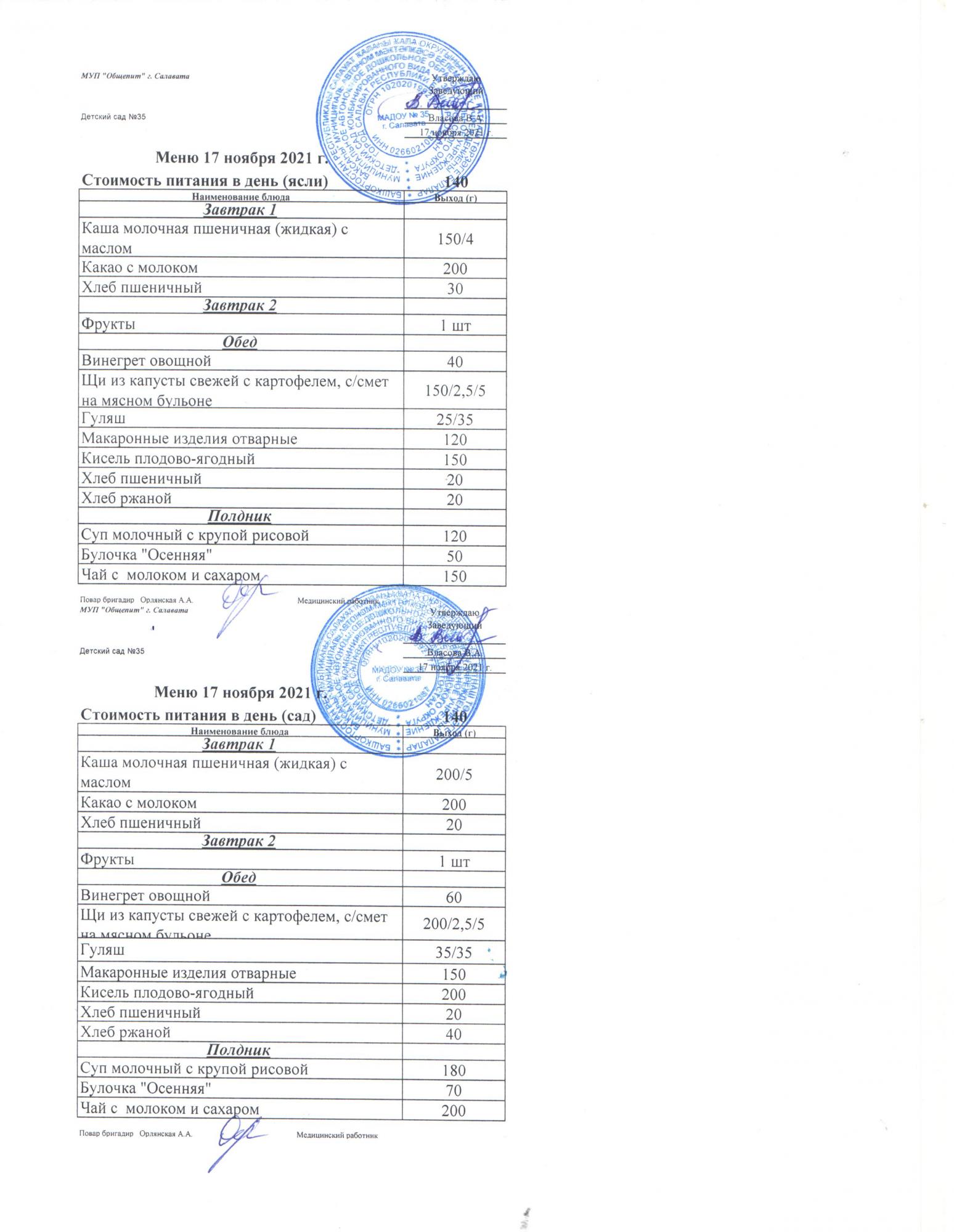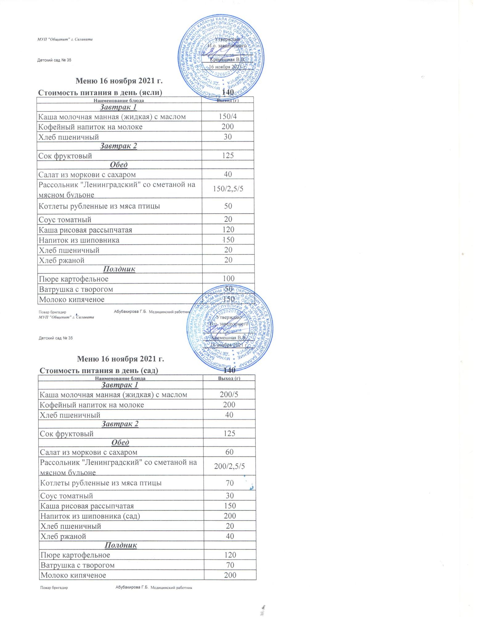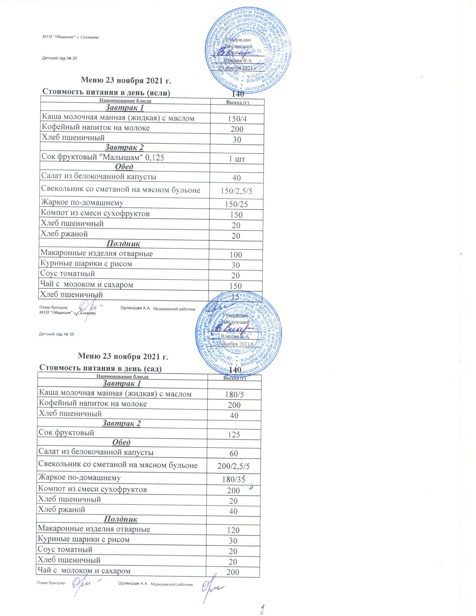 индивидуальное меню для Н.М.Д.